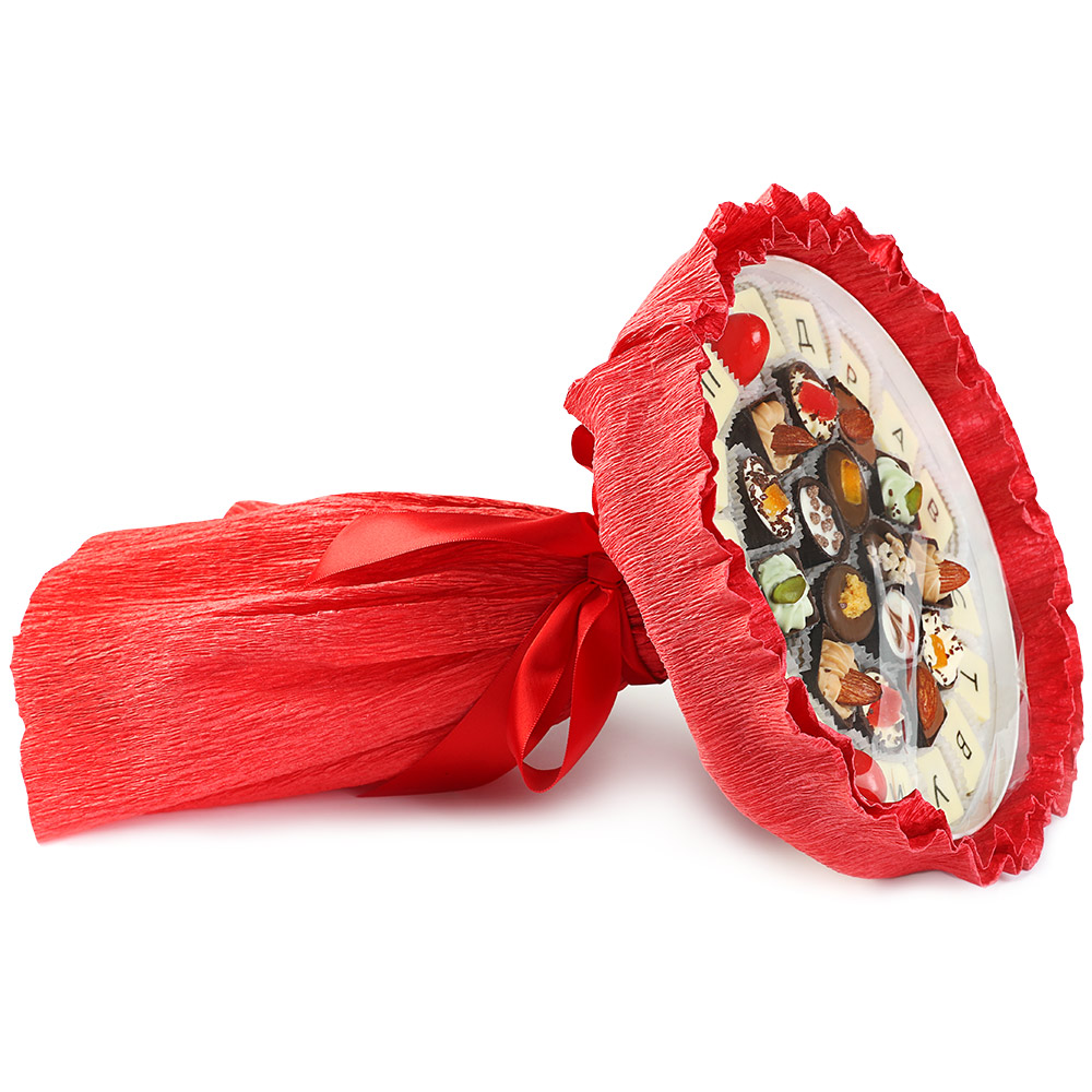 Букет с конфетами и драже «Здравствуй, школа!» - сладкий шедевр, объединивший креатив дизайнерского оформления десерта с высочайшим качеством настоящего шоколада, из которого изготовлены все лакомства.
